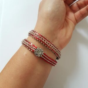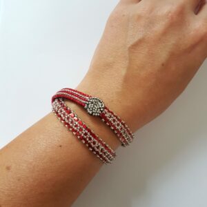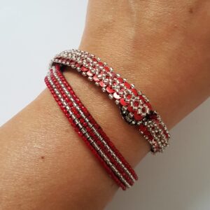 Bracelet Galon Double Argent et Rouge