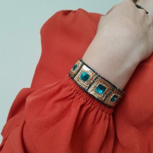 Bracelet Haute Couture femme brodé sur organza de soie avec des perles de verre et paillettes