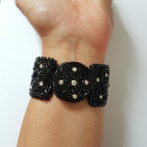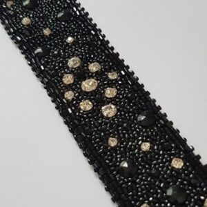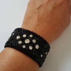 Bracelet Large Galon Noir et Cristal
