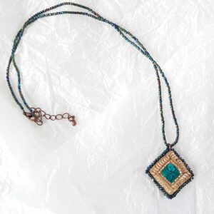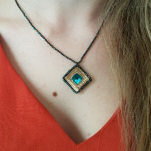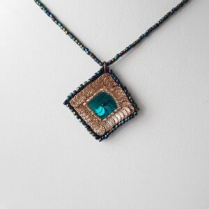 Collier Pendentif Carré femme Haute Couture collection Egypte, brodé au crochet de Lunéville