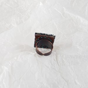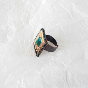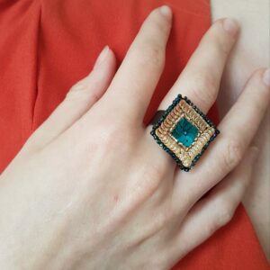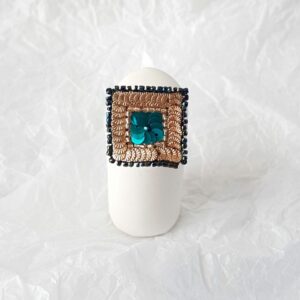 Bague réglable support en métal couleur bronze, broderie sur organza de soie de paillettes