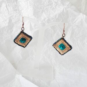 Boucles d’oreilles Egypte pour femme, paillettes et perles vert et bronze brodées sur organza de soie